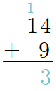 마찬가지로 14+9를 해결하기 위해서는 일의 자리를 더할 수 있습니다.
