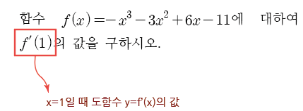 나아가 x의 값이 주어져있을 경우 도함수의 함숫값을 구할 수 있습니다.