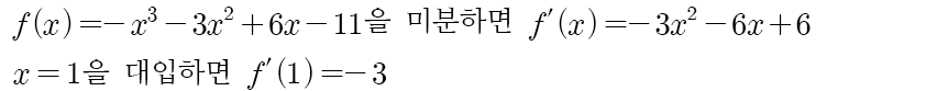 2단계, 도함수 f'(x)에 x=1을 대입한다.