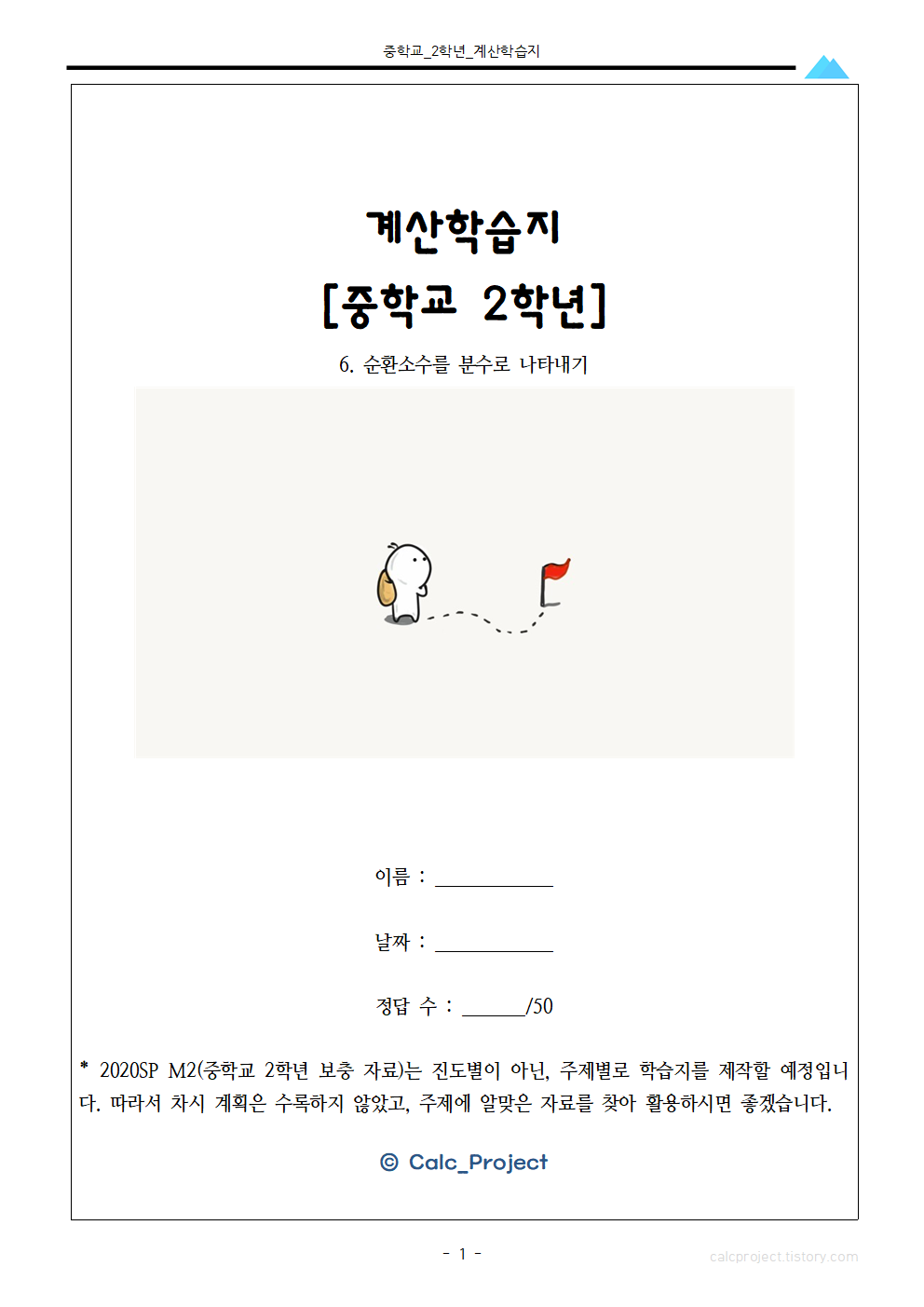 #태그 : 분수, 순환소수, 순환소수 문제, 순환소수를 분수로 나타내기, 연산문제 다운, 유리수와 순환소수, 중학교 2학년 수학, 중2 수학, 학습지제작소, 중학교 2학년 연산 문제