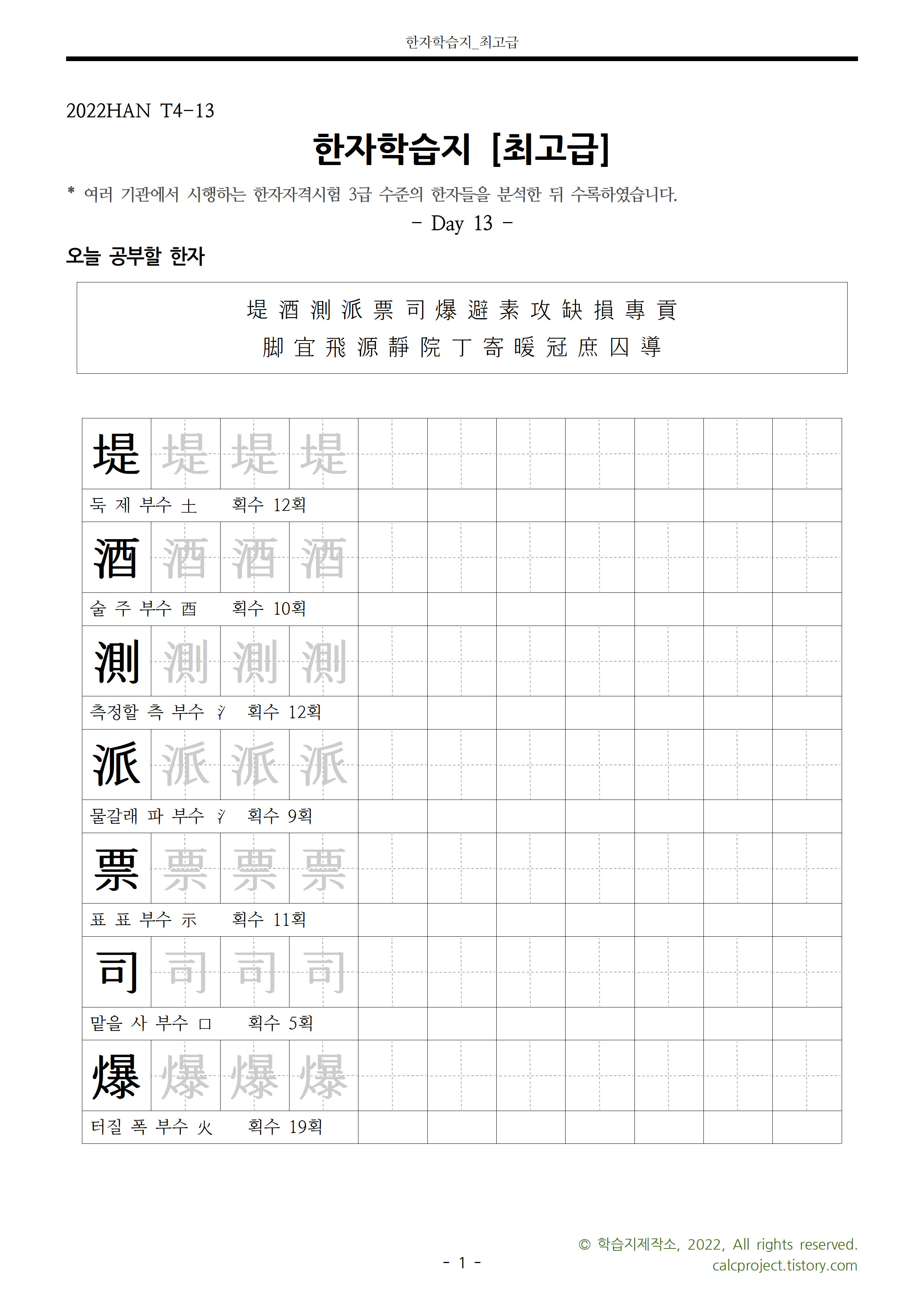 | 한자학습지 최고급 선정한자, 쓰기연습장 Day12 (0) | 2022.03.08 |