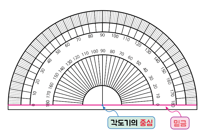 ★ 밑금: 각도기 밑에 있는 긴 선분입니다.