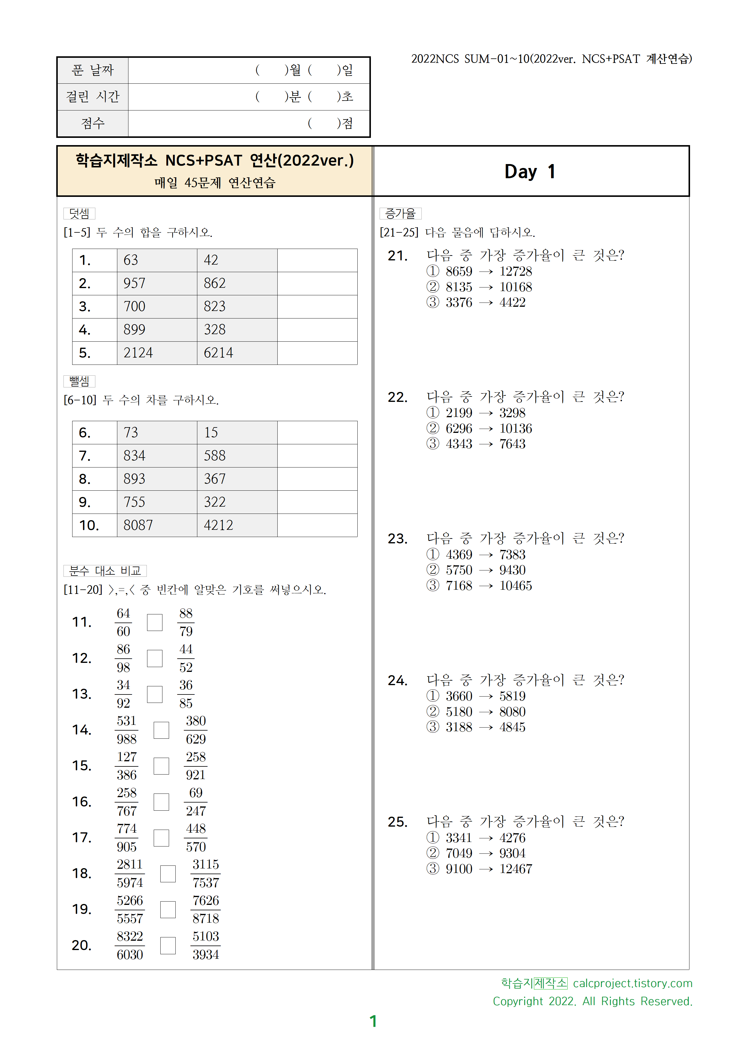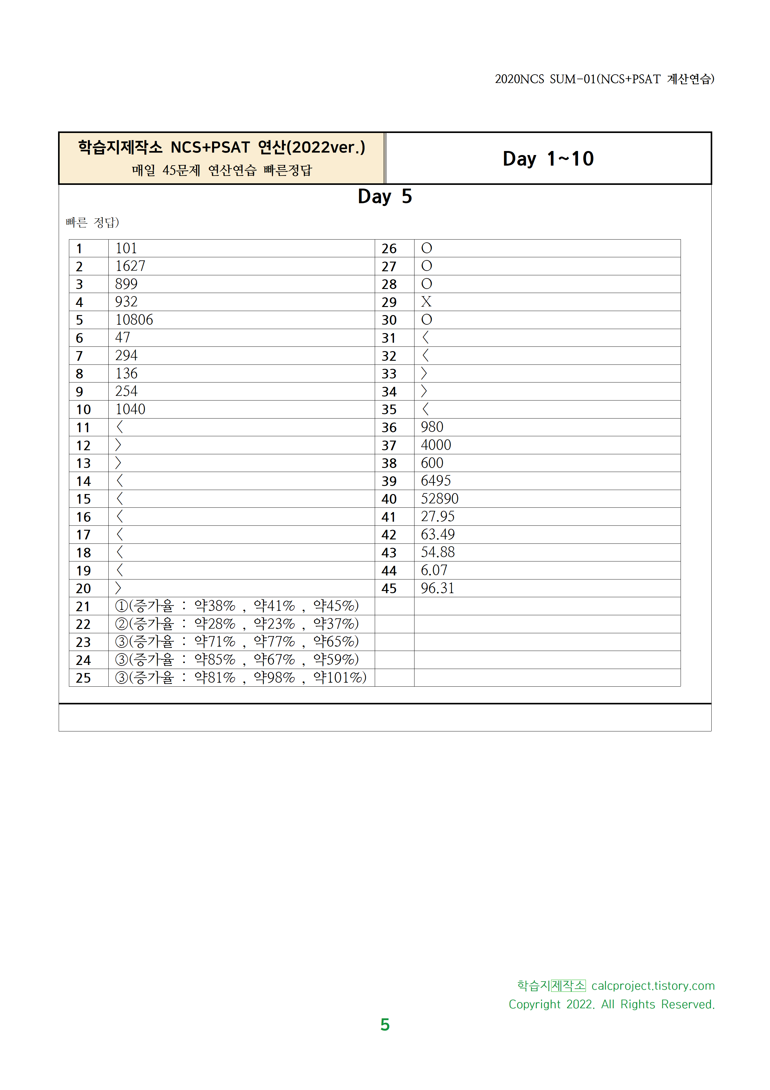📄 [NCS | PSAT/2020 NCS+PSAT 종합 연산] - 학습지제작소 NCS+PSAT 종합연산연습 Day 2 : 45문제 (SUM-02)