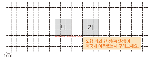 예를 들어, 도형 가와 나의 왼쪽 아래 꼭짓점을 각각 잡아봅시다. 점이 어떻게 움직였나요?