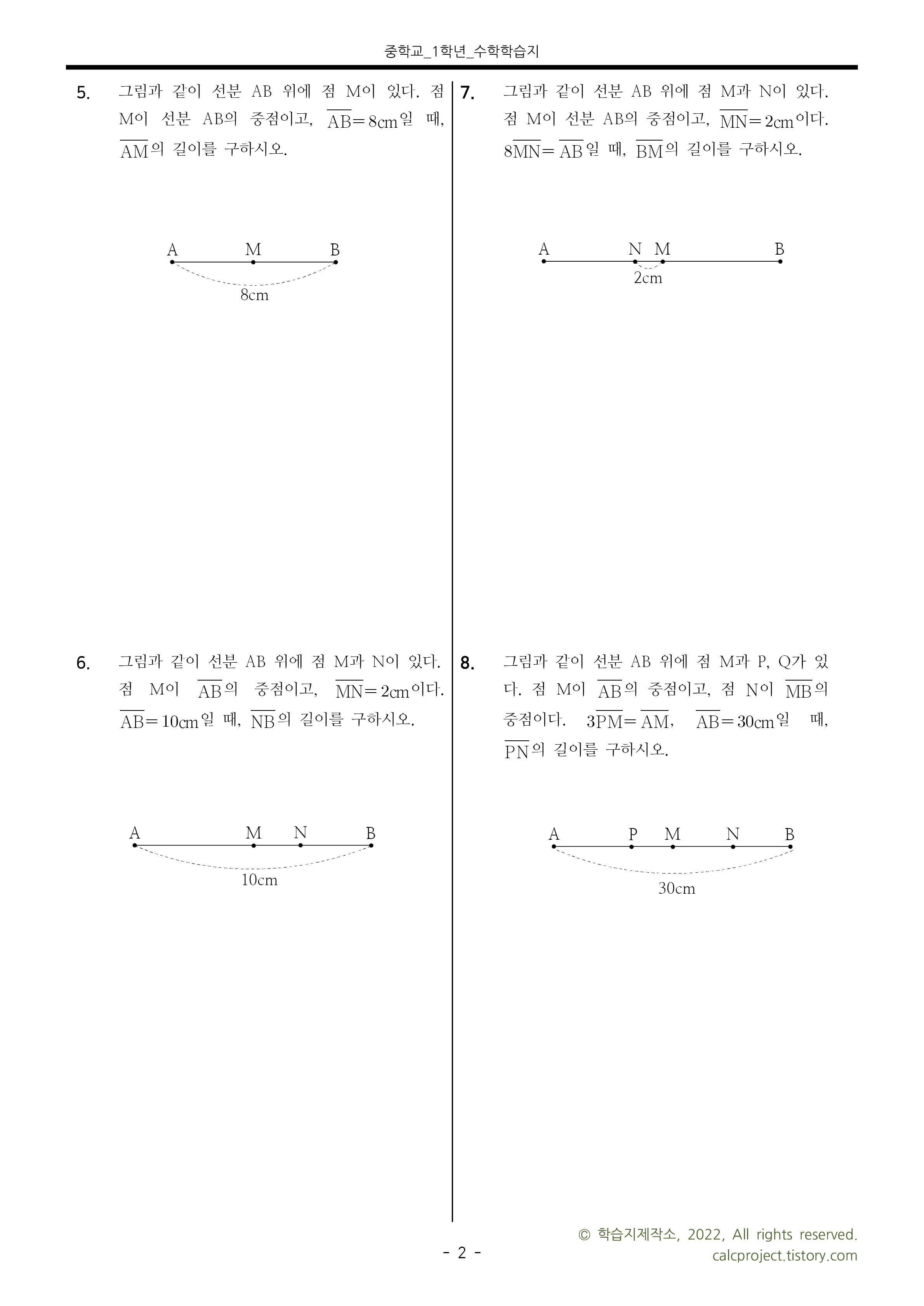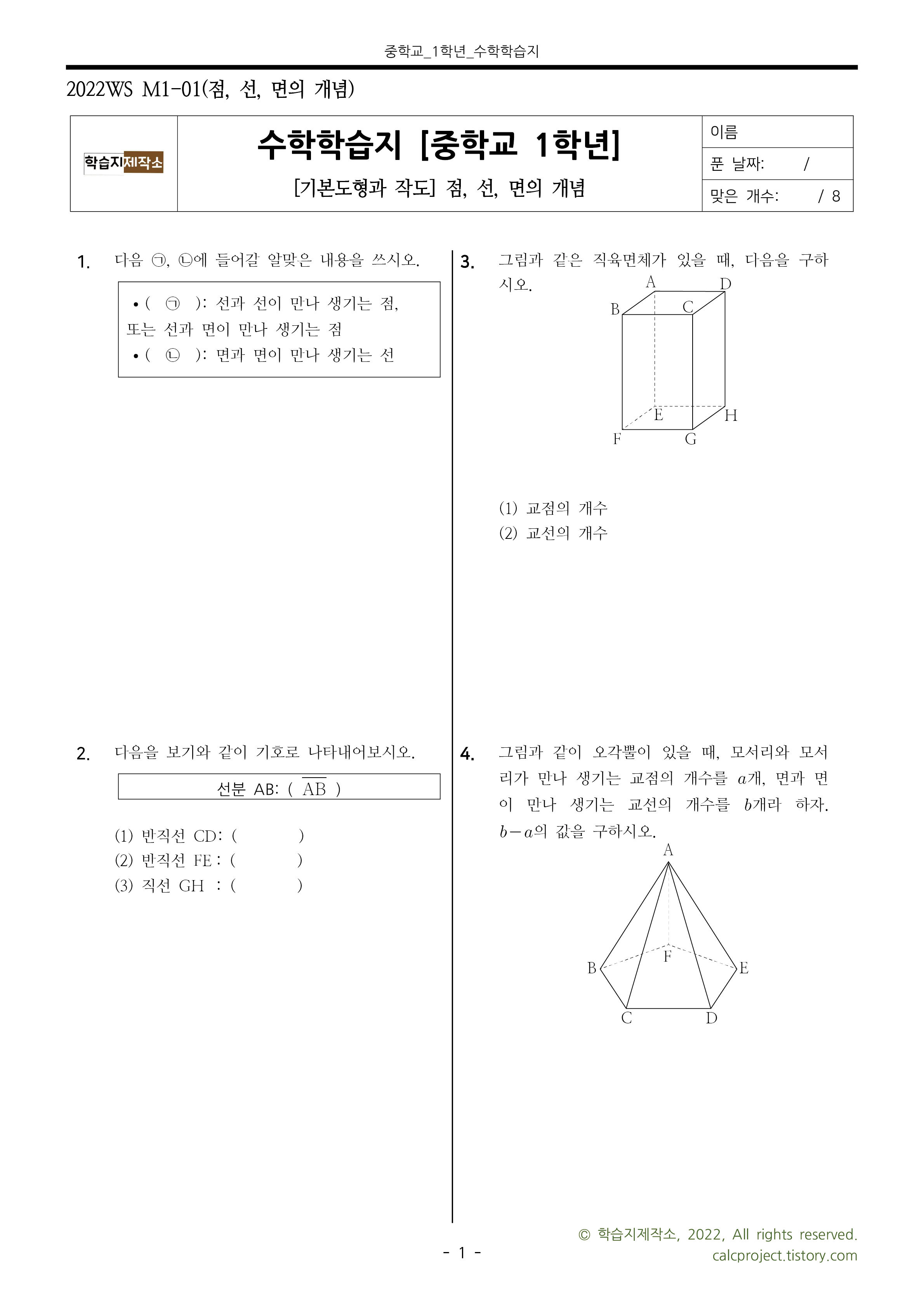 하지만 정말 많은 분께서 중학교 1학년 2학기 학습지를 요청하셨고, 저 또한 중학교 1학년 2학기를 만들어야겠다고 느껴서