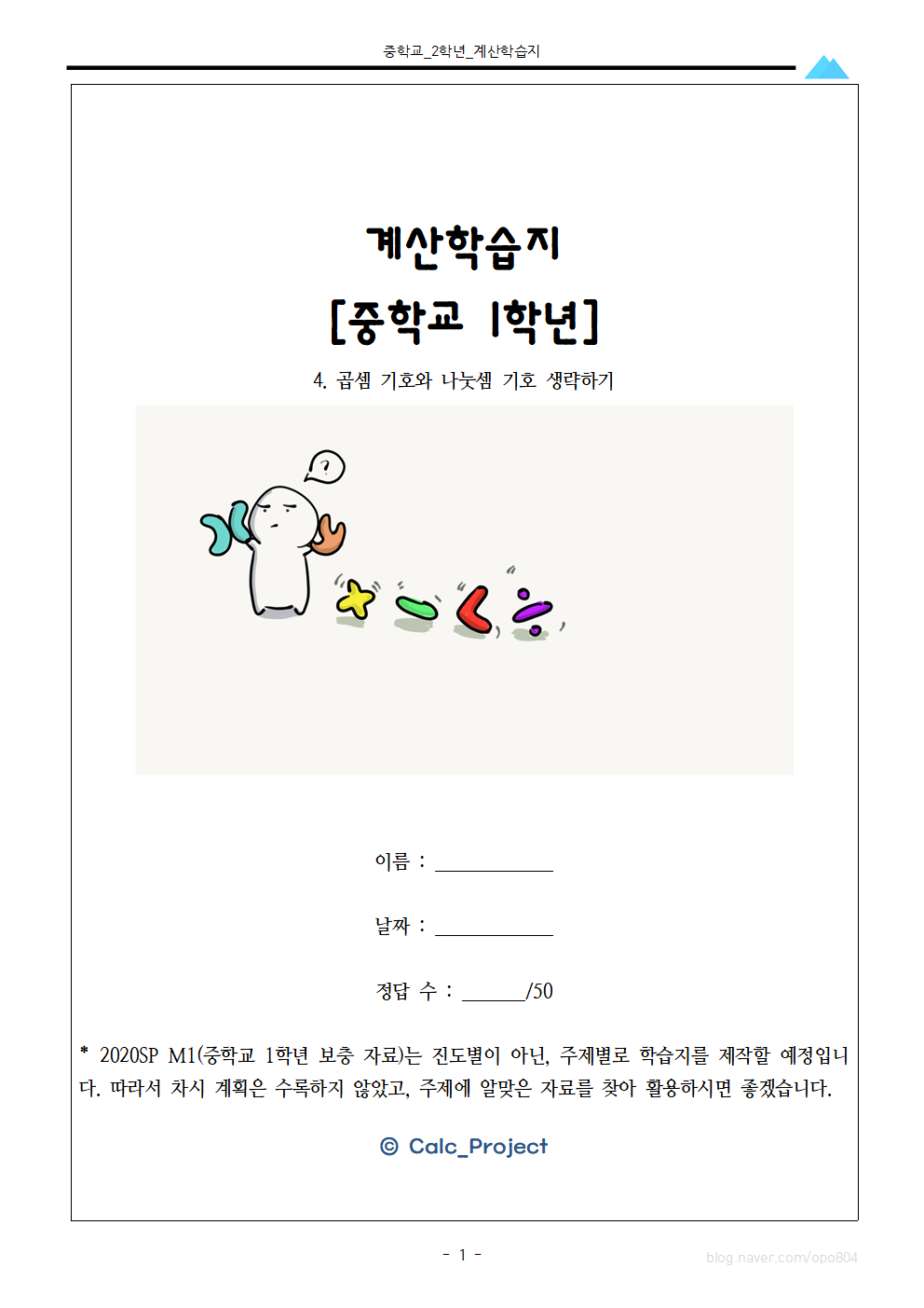 '수학 학습지 > 중학교 1학년 1학기' 카테고리의 다른 글