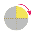 만약 시계 방향으로 90°만큼 돌렸다면 그림과 같이 나타낼 수 있습니다.