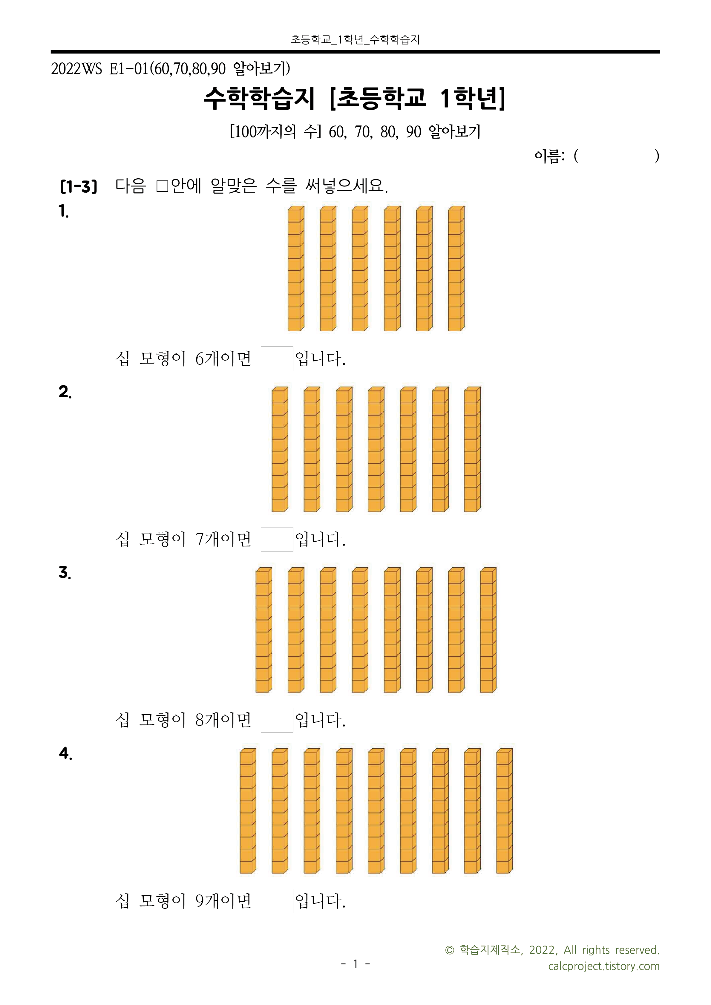 '수학 학습지 > 초등학교 1학년 2학기' 카테고리의 다른 글