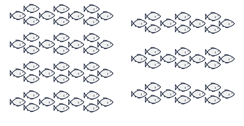 예) 그림에서 생선은 10개씩 7묶음으로 70마리입니다.