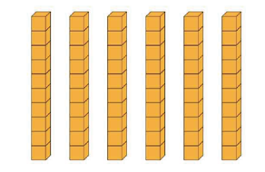 위 그림에서 십 모형은 6개입니다. 묶음은 6개, 낱개는 없습니다.
