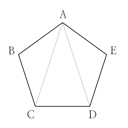그림과 같이 정오각형 ABCDE의 꼭짓점 A에서 두 대각선을 그으면 3개의 삼각형이 만들어집니다.