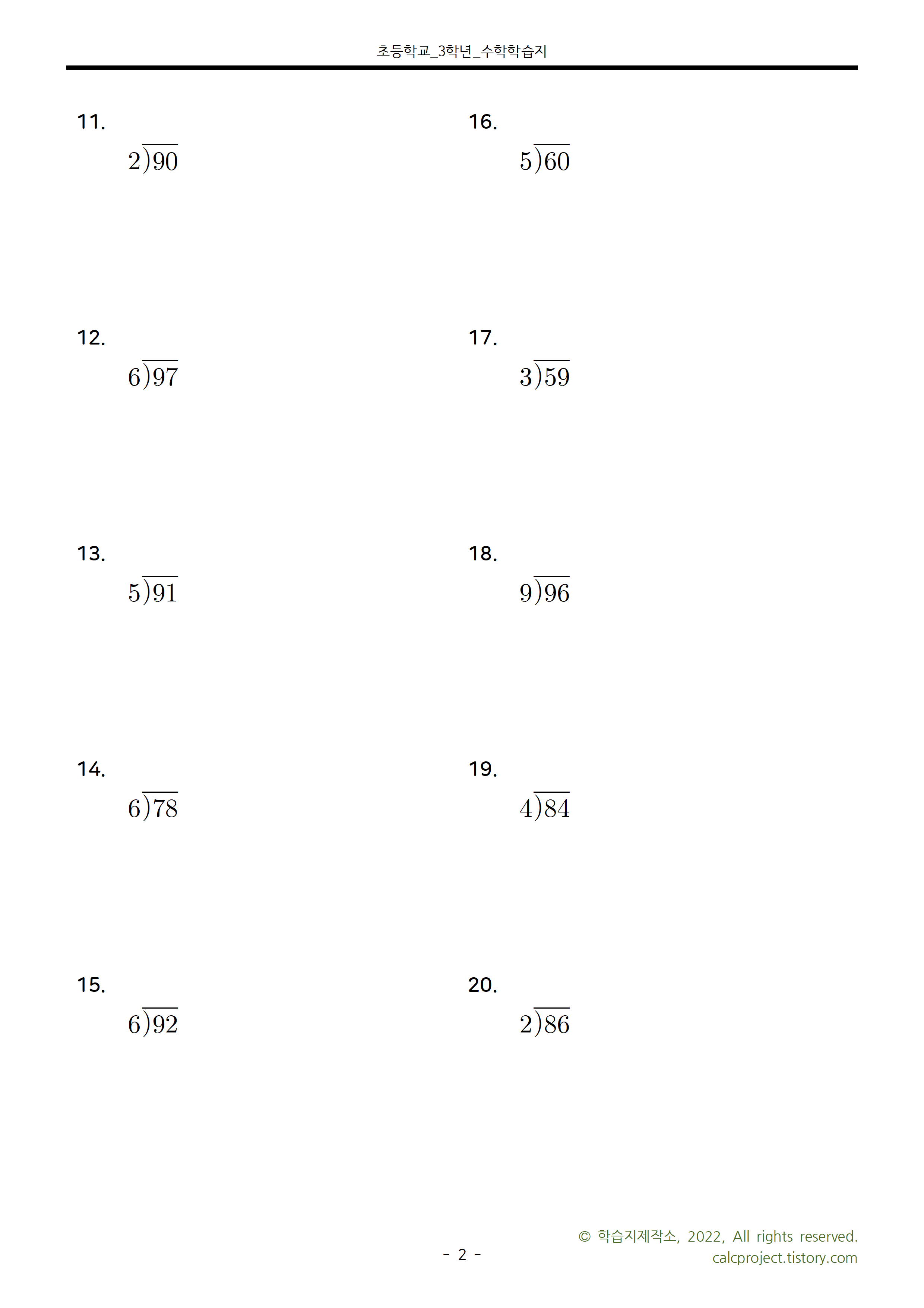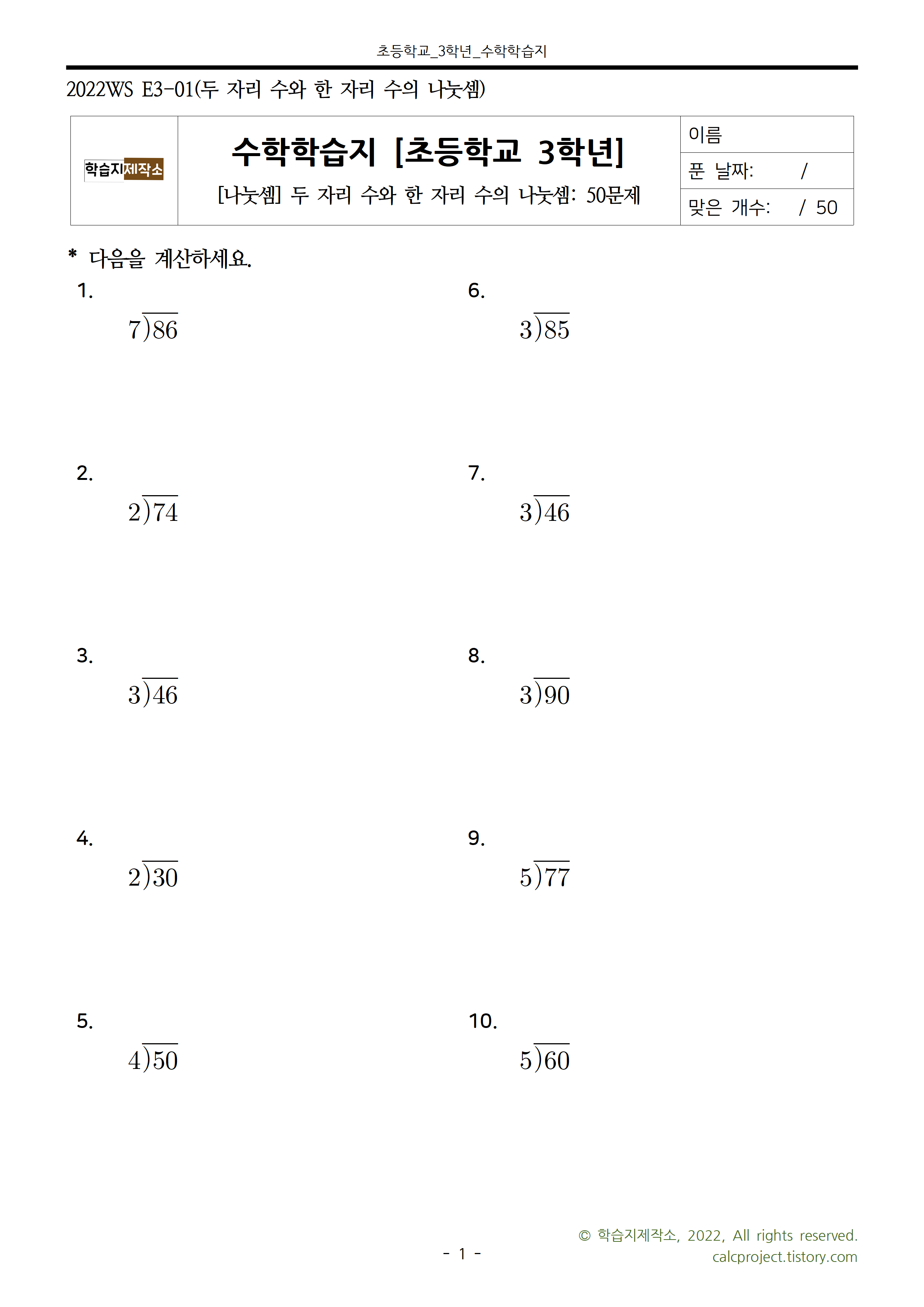 #태그 : 초3, 초등학교 3학년, 수학학습지, 나눗셈