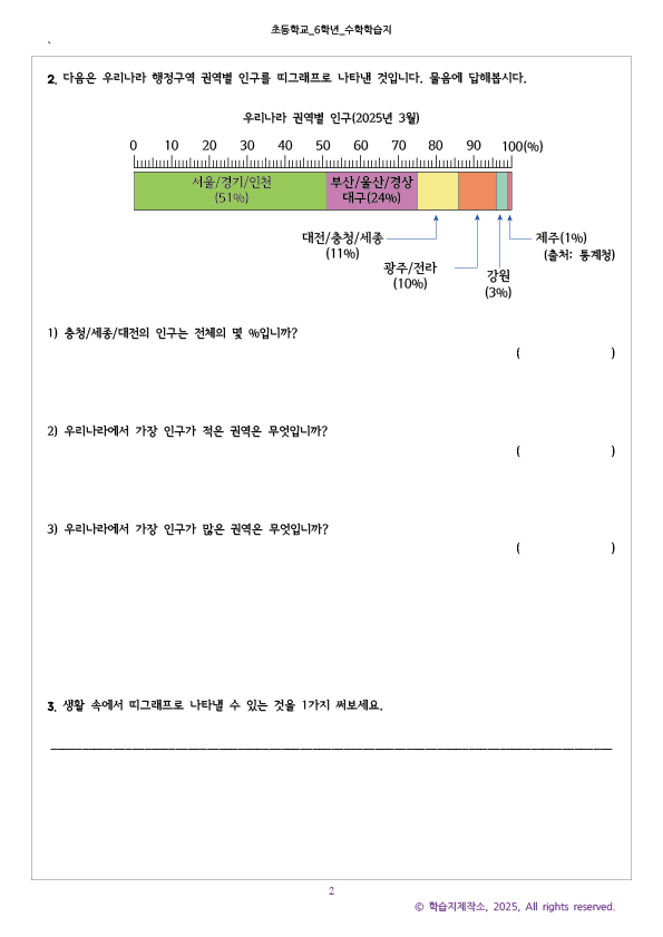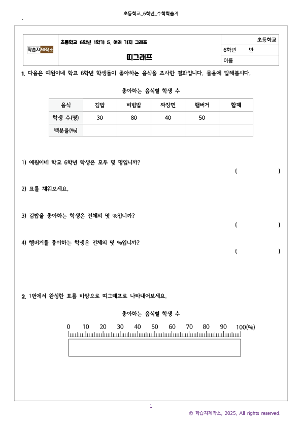 이번 자료는 초6수학 띠그래프 문제지와 정답지가 같은 pdf에 있습니다.