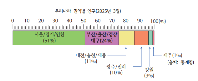 실제로 우리나라 인구 분포는 서울과 수도권에 몰려있기도 하고요.